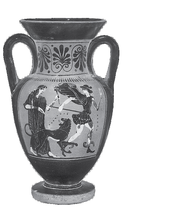 Гера посылает Ириду с Немейским львом. Амфора. Ок. 500 г. до н. э.