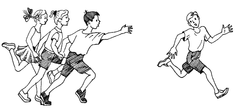 Как только убегающий найдет себе место в круге, его сосед справа превращается в догоняющего, а тот, кто был догоняющим, теперь сам спасается от преследования. Он может бежать вперед, назад, по своему усмотрению, но только, конечно, по внешнему кругу. Спасаясь, он тоже может встать в круг, и тогда побежит его сосед справа, но теперь уже в роли не убегающего, а догоняющего. А тот, что догонял, побежит по кругу, спасаясь от преследования.