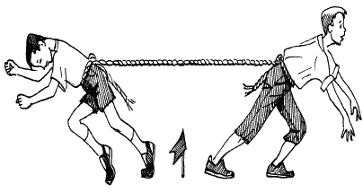 Игра построена по принципу борьбы. Она учит детей сосредоточивать и направлять все свои силы на выполнение какого-то определенного действия, развивает интуицию. Играющие делятся на пары. В центре площадки чертится небольшой круг диаметром не более 1 м. Каждая пара поочередно проводит состязание на силу. Для этого игроки встают по противоположные стороны круга спиной друг к другу. Ведущий обвязывает их за талию одной веревкой так, чтобы она слегка свисала в середине.