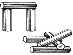 Нужны несколько небольших брусочков и бита, т. е. большая толстая палка. На игровой площадке из брусочков строятся разные фигуры. Задача игрока – находясь на некотором расстоянии, бросать палку-биту так, чтобы одним ударом сбить все фигуры на площадке. С каждым разом делаются все более и более сложные фигуры. И игрок должен точно таким же образом сбивать их. В результате побеждает тот, кто собьет больше фигур.