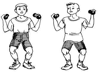 Эстафету можно проводить двумя способами: первый – поочередное выполнение задания, второй – прохождение туров с передачей эстафеты легким ударом по плечу. В этом случае время играет свою роль, и за более быстрое выполнение, сочетаемое с качеством, команда получает дополнительное очко на каждого игрока. Еще одно правило: все задания, кроме прыжков, проводятся с нагрузкой не менее 1 кг. Бег с гантелями, прыжки также выполняются с гантелями в руках или с поясом-утяжелителем: при отжимании он кладется на плечи сверху. Приседания выполняются с нагрузкой. Не каждый «матрос» выдержит такую нагрузку, и кое-кто может сдаться, а в условия входит полное выполнение всего комплекса. Можно понемногу отдыхать после каждого тура, но в его середине останавливаться нельзя.