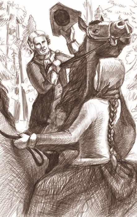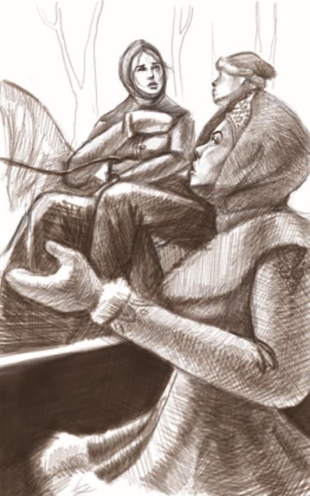 – 3-«О матушка! Там, на холме,Уж виден город с куполами.Нельзя ль заехать быстро мне,Родных наведать за стенами?Там брат мой служит в гарнизоне,Мы не видались целый год.Его я вижу – вон, в камзоле,Салют эскорту отдаёт».