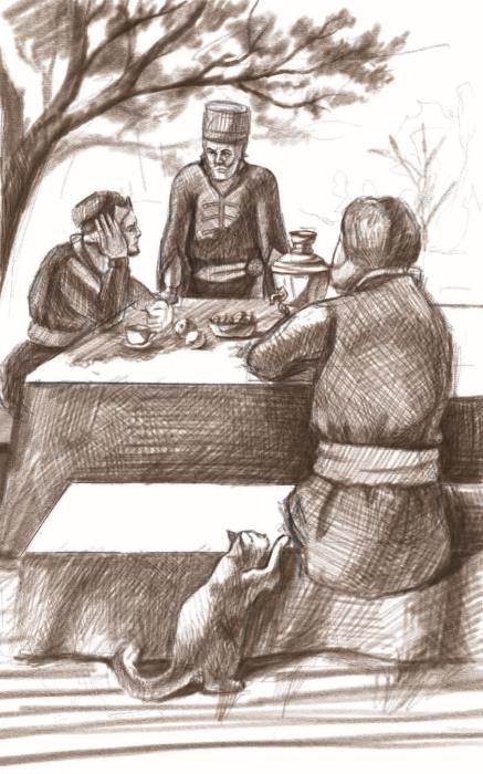 – 4-Обычным тихим вечеркомУ самовара, за столом,В саду, где вишен белый цвет,Держал глава градской совет.Он был увёртлив и рискованИ службу правил здесь сурово.Все арзамасские купцы,Работный люд, святы отцыЕго на сходах выбирали.Не первый раз ключи вручали.Имел он пару ездовыхДа два десятка дворовых,Земли полсотни десятинДа домик с садом в сто аршин.Советчиков пришло не много,Народ надеялся на бога.В беседе за столом сидели дваСтаринных друга-вожака —Матвея сын да Прокла сын.Для них что бог, что чёрт – един!Общались прямо и без лести.Торговлей занимались вместе.«Ты для чего нас здесь собрал? —Матвея сын вопрос задал. —Доход тебе не по нутру,Что разделили поутру?Прибыток делим всяк по чести.Иль получил худые вести?Порядок правим на торгу,На том и этом берегу».Признаться надо мне, друзья,О том, что утаить нельзя.Глава наш воровал немного,Но каялся всегда он богуЗа то, что мзду брал на торгах,А также и на выездах.Всё потому, что за стенойБольшак проходит в край другой.А разделяла этот путьРека. Её не обогнуть.Закон блюсти и тут и тамВменялось городским главам.*****Я возвращаюсь к разговору,Что сын Матвея вёл сурово.«На сон грядущий ни к чемуРешенье принимать к челу.Лучей божественный рассветНа все вопросы даст ответ» —Так изъяснялся Прокла сын,Он с другом в этом был един.«Я не нуждаюсь в поученьях.Эскорт имперского значеньяПроследует здесь мимо нас.О том я получил указ!Юсуповых пора скрутить,Чтоб не могли нам навредить.На Выездновской слободеОни орудуют везде!Вдруг нападут на караван?!На плаху ляжешь быстро сам!На помощь звать святых отцов,Чтоб пристыдили подлецов?А вдруг проверочка уж едет?Тогда расправа всем нам светит!»И, осенив себя перстами,Умолк глава, шепча губами.Молитву к богу он вознёс,Задав друзьям немой вопрос.На том совет сей завершили,Но вывод делать не спешили.Надёжа всяко на «авось» —Так на Руси уж повелось.Накрыла город тишина,Не зная, что всех ждёт с утра.И тихий с виду городокСпал, как и прежде, у дорог.– 5-Чуть свет, а город в кутерьме.Приходится в поэме мнеВсё по порядку излагатьИ сказ о прошлом продолжать.Опорой нашему ГлавеСлуживый люд жил на селе.Имел солдат земли надел,Вот за него он и радел.Отслужишь двадцать пять годков —Получишь сорок локотковДа пару золотых в придаток.А жизнь оставь царю в задаток.Нёс службу целый гарнизон,Насчитывал семь пушек он,Да новых рекрутов чуток,Да стариков ещё пяток.Казаков с сотню набралось,Им в помощь был всегда «авось».Командовал над войском темКурляндец, немощный совсем.Не то Офюрст, не то Огюст,Но по замашкам хитрый хлюст.Как караулы проверятьИль на ученьях пострелять —Майор не может, очень болен,А передать команду волен.Что он и делал много раз,Поручику отдав наказ.Приказ Морозов понималИ долг Отчизне отдавал.Вот основной наш персонаж,Повеса, бывший царский паж,От безысходности хандрил,В печали по торгам ходил,Кирасу чистил и палашДа проверял коням фураж.На стенах часто вдаль смотрел,В столицу мыслями летел.Хочу читателю напомнитьИ о глубиночке замолвить,Что в городах, таких как наш,Второй родился персонаж.Он чин по праву заслужил —Лет десять в унтерах ходил,Емелькин подавляя бунт,Остался в командирах тут.Прокопий наш был нелюдим.Угрюм, суров и жил один.Годов ему уж к тридцати,Семью пора бы завести.Науки он не изучал,От жизни опыт получал.Один Морозов МихаилК нему от с