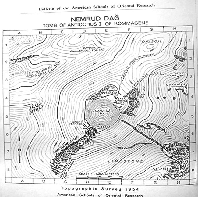 Рис. 3. План нимруд-дагского комплекса, снятый специалистами Американской школы Восточных Исследований в 1954 г.