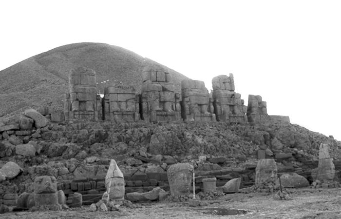 Свидетельств о правлении приемника Птолемея – царя Сама II (130–100 гг. до н. э.) практически не осталось, за исключением монет[36] и упоминаний о нем в надписях его внука Антиоха I (OGIS. I. 396, 402), одного из наиболее ярких представителей династии коммагенских Оронтидов, правившего с 69 по 34 г. до н. э. Именно от времени его правления до нас дошло наибольшее количество исторических памятников – надписей (в основном религиозного характера), статуй богов, барельефов и т. д. Видимо, расцвет Коммагенского царства пришелся на его правление. Самым же значительным памятником, который он оставил после себя, является грандиозное святилище – гробница Нимруд-Даг на северо-востоке Коммагены. Нимруд-Даг представлял собой курган, являющийся искусственно надстроенной вершиной самой высокой горы Коммагены высотой более 2200 м, состоящей из принесенного материала. Он имеет форму конуса с диаметром основания примерно в 150 м, высота которого превышает 50 м. У подножия конуса расположены три террасы: Северная, Восточная и Западная.