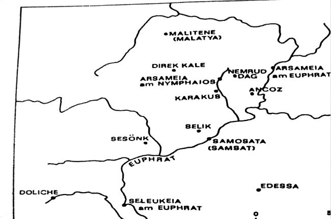 Рис. 6. Карта памятников Коммагены. (По: Goell Т. Nimrud Dagh. The tomb of Antiochus I king of Commagene // Archaeology. 1952. № 4. P. 140)