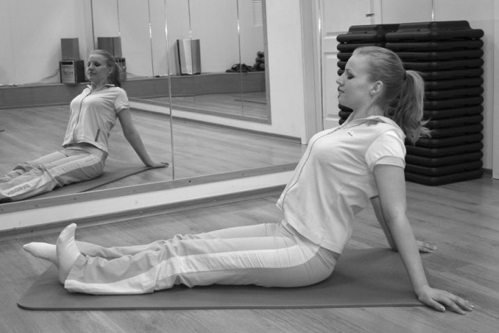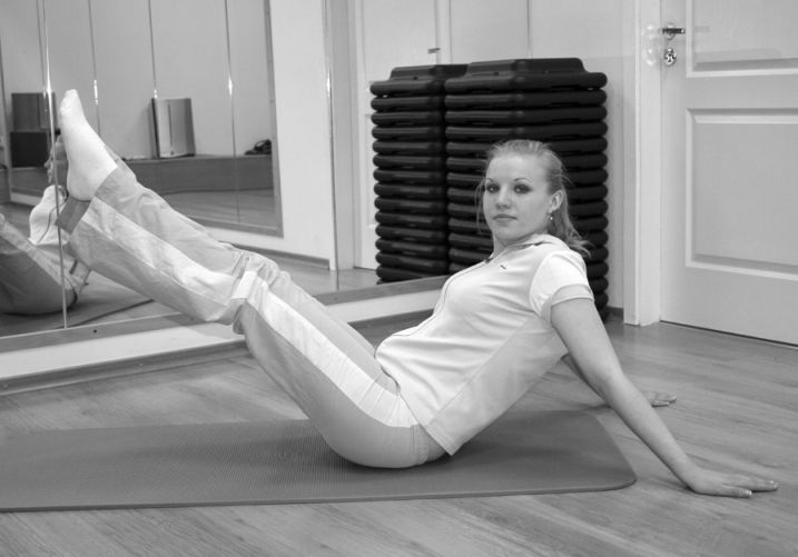 6. Упражнение для живота. Лягте на пол на спину. Ноги выпрямите и прижмите друг к другу. Руки положите вдоль туловища. Поднимите верхнюю часть туловища, опираясь руками об пол. Вернитесь в исходное положение. Сделайте 20 подъемов (фото 9).