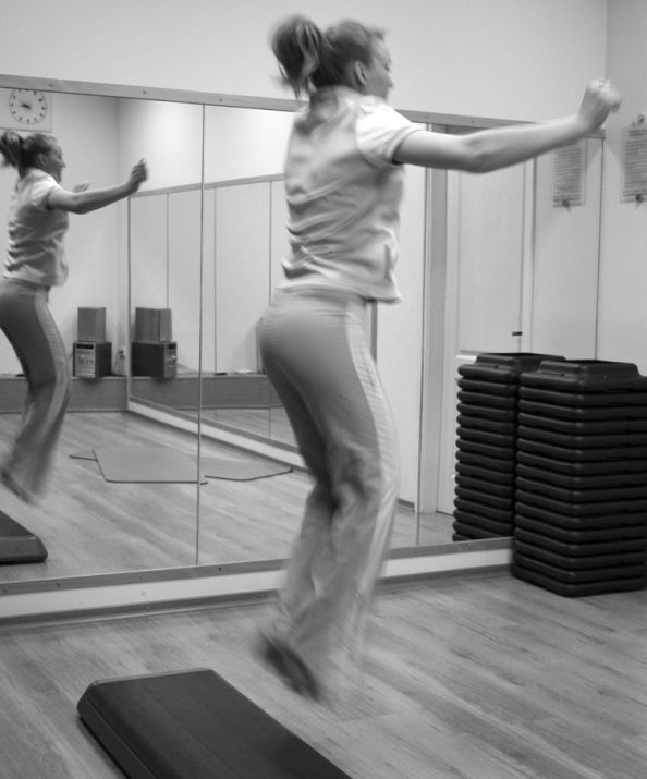 Поскольку мы уже получили достаточную нагрузку через ходьбу и прыжки, для степ-аэробики отведите не более 20–30 мин.