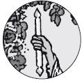 Двухсторонний белый жезл. Символ власти над четырьмя первоэлементами, приема энергии. Это проводник из мира идей в мир материальный, обоюдоострый жезл Гермеса, указывающий на подобие земли и неба и иллюстрирующий принцип «То, что внизу, подобно тому, что наверху. И то, что вверху, подобно тому, что внизу, чтобы осуществить чудеса единой вещи». Два рабочих конца указывают на двойную функцию – принимающую и отдающую, перенаправляющую, оплодотворяющую. Черпая свою творческую силу и энергию из божественного источника, человек направляет свое дарование и мастерство вниз. Белый жезл подобен белой розе у Шута – только в чистом состоянии можно воспринять и качественно воплотить идею.