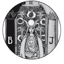Белая колонна Яхин («Он утвердит») и черная Боаз («В нем – сила»). Они разделяют пространство рисунка на две части и образуют собой портал. Вершины колонн выполнены в форме открытой чаши и символизируют готовность принимать и воспринимать. На колоннах нанесены буквы В и J, Яхин (Jahin) и Боаз (Boaz). Это врата святилища, столпы древнего Иерусалимского храма, атрибут масонских храмов. Они соответствуют принципу инь и ян, единению противоположностей, создающих мир. Колонны обладают противоположными свойствами и сильны каждая по-своему, сливать или уравновешивать их в правах – значит разрушить их, лишить индивидуальной силы. Яхин сильна экспансивностью, активностью, Боаз сильна в своем принятии, ограничении и сохранении. Предметы противоположной природы показывают, что в ситуации не все так однозначно, есть множество факторов, в том числе и скрытых, которые надо учитывать, так как они также влияют на ситуацию, и невозможно отдать предпочтение одному из них.