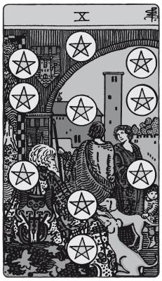На втором старшем аркане Древо нарисовано на полотне как проект, возможность, задумка. Этот символ мы встретим и на других арканах, а максимальное воплощение увидим на карте Десятки пентаклей – на ней изображены пентакли (символ максимально уплотненной энергии) в форме Древа.