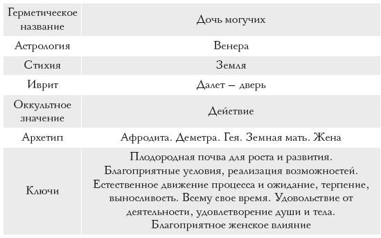 Черный гранат. Символ теневой сефиры Даат. Путь Жрицы на Древе жизни проходит через невидимую, или «ложную», сефиру Даат (знание, гнозис, ключи знания). Это врата бездны, в которой душа может погибнуть без должного водительства, как человек в пустыне без верблюда. Даат (др. – евр. «познание») в учении каббалы о происхождении миров – союз двух сефир мироздания: мужского, активного принципа Хокмы («мудрость») и женского, пассивного принципа Бины («разум»). Соединение мудрости и разума порождает познание. Жрица также связана с гнозисом и познанием. Согласно мифу, от союза Хокмы и Бины, отца и матери, родилась вся Вселенная. Таким образом, Даат определяет свою роль посредника и некой границы для остальных сефир, так как она отделяет Хокму и Бину от нижней части Древа. Граница похожа по символизму на врата, это один из символов Даат. Она может не только открываться, допуская взаимодействие, но и закрываться, создавая препятствие, завесу, что видно как на аркане Верховная жрица в колоде Уэйта, так и на аркане Жрица в Таро Тота Кроули. Алистер Кроули так и писал: «Чистота – это жить во имя Высшего; а Высшее – это все; будь как Артемида для Пана. Читай Книгу Закона и прорвись сквозь завесу Девы»[3].