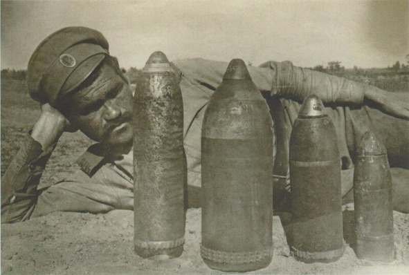 Солдат 305-го пехотного Лаишевского полка со снарядами, 1915—1916 годы