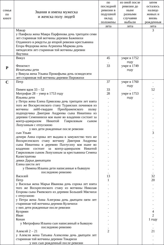 Как было указано в первой части книги, после смерти своего отца Родиона Куприянова главой семейства стал его единственный сын Михаил. Более того, в 1745 году умер его двоюродный дядя Матвей Родионов, и Михаил остался самым старшим мужчиной. В 1855 году у них с женой Анной Терентьевой родился долгожданный сын, которого крестили по имени Никифор. Помимо Никифора и старшего ребенка дочери Натальи, о детях Михаила и Анны ничего не известно; мальчиков не было, иначе о них, даже умерших в младенчестве, упоминалось бы в ревизской сказке. Дочь Наталья теперь жила в соседней деревне Токариха, куда была выдана замуж до 1760 года за крестьянина Устина Самойлова.