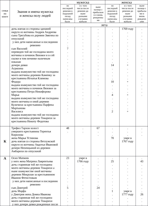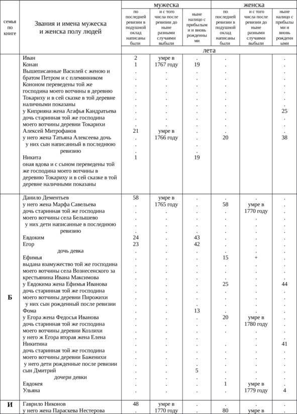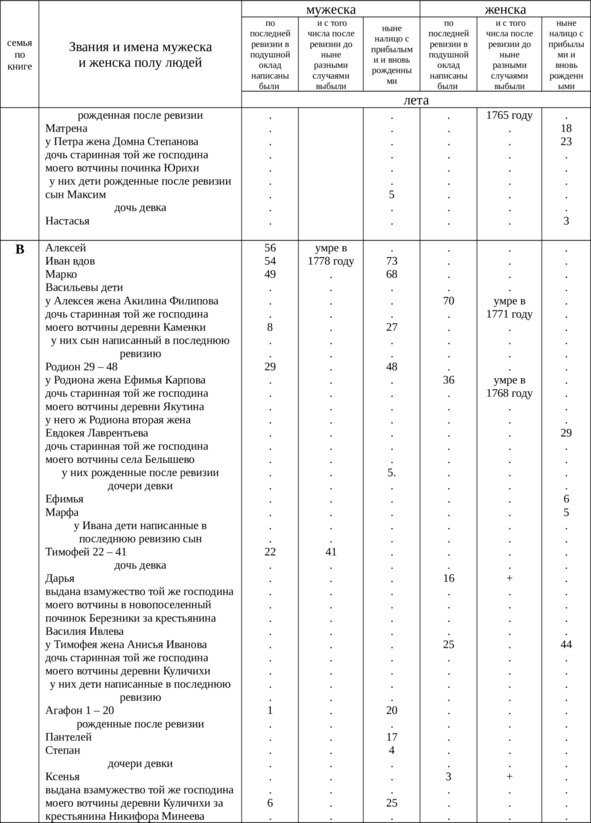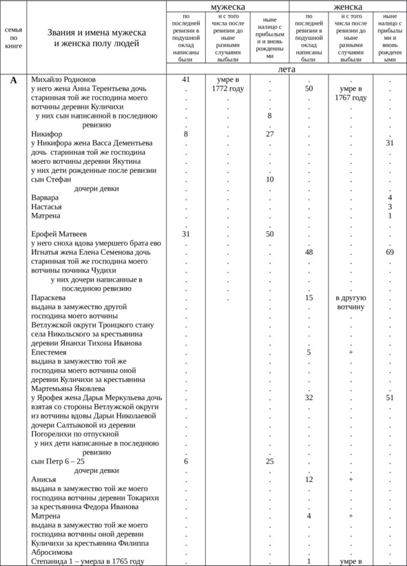 К 4-й ревизии семейство (А) состояло из 18 человек: