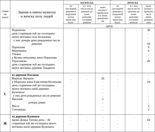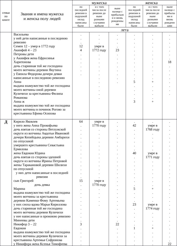 Еще одно семейство прекратило свой род в деревне Куличиха и далее показано не будет.