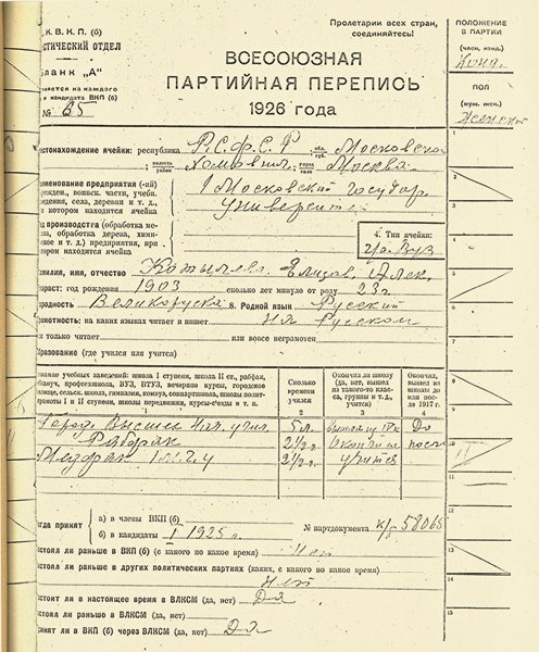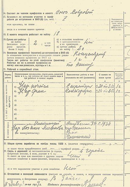 Анкета участника Всесоюзной партийной переписи 1926 г. [РГАНИ]