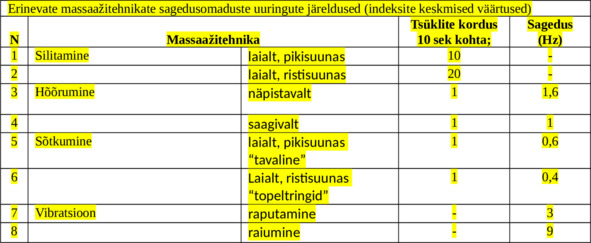 Kaasajal uuritakse massaažimanipulatsioonide sagedusi: lainete sageduslikke omadusi, mehaanilisi võnkeid ja laineid mis massaažiprotsessi käigus esinevad7.
