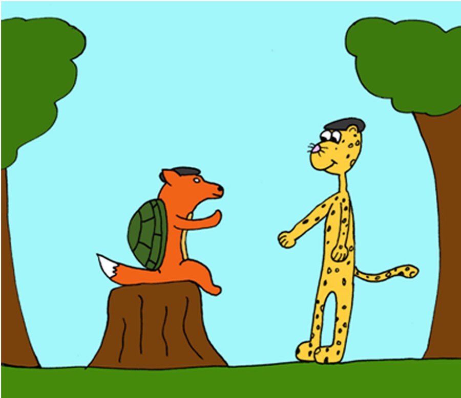 “Mio caro amico, Leopardo, voglio farti un favore che ti renderà ancora più popolare del Re Leone. Decorerò i tuoi cuccioli con bellissime macchie come non si sono mai viste da nessuna parte. E quando avrò finito di dipingerli, tutti gli animali di Jungle Town realizzeranno finalmente che il Re Leone non può competere con te. Alla fine, tutti a Jungle Town si uniranno a te e t’incoroneranno Re al posto del Leone. E cadranno in ginocchio davanti a te e grideranno: Ave Re Leopardo!”