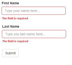 Валидация на обязательность заполнения поля – наиболее частый кейс. Ее работу легко проверить. Оставьте обязательное поле пустым и нажмите кнопку [Submit]. Мы должны увидеть сообщение об ошибке, например: