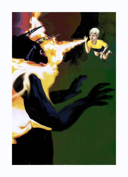 – Мужики! Бабы! Там в лесу чудище огнедышащее! Чуть меня не спалило! Еле ноги унёс!