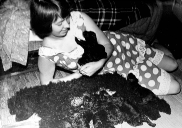 Меня в это время дома не было, зарабатывала «на жизнь» в стройотряде. Знаю только, что на второй или третий день после родов у Груни началась родовая горячка. Щенков пришлось отнять, и родители по очереди каждые два часа кормили их из пипетки! Но выкормили, не погиб ни один. Когда в конце августа я вернулась домой, по квартире носилось стадо черных барашков. Топот стоял…