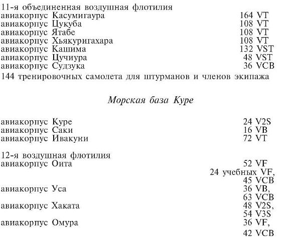 В одном секретном документе – «Структура японского флота военного времени», копию которого я тоже получил, – приводятся данные по составу сил морской авиации первого и второго эшелонов на начало войны. Как говорится в этом документе, они таковы: