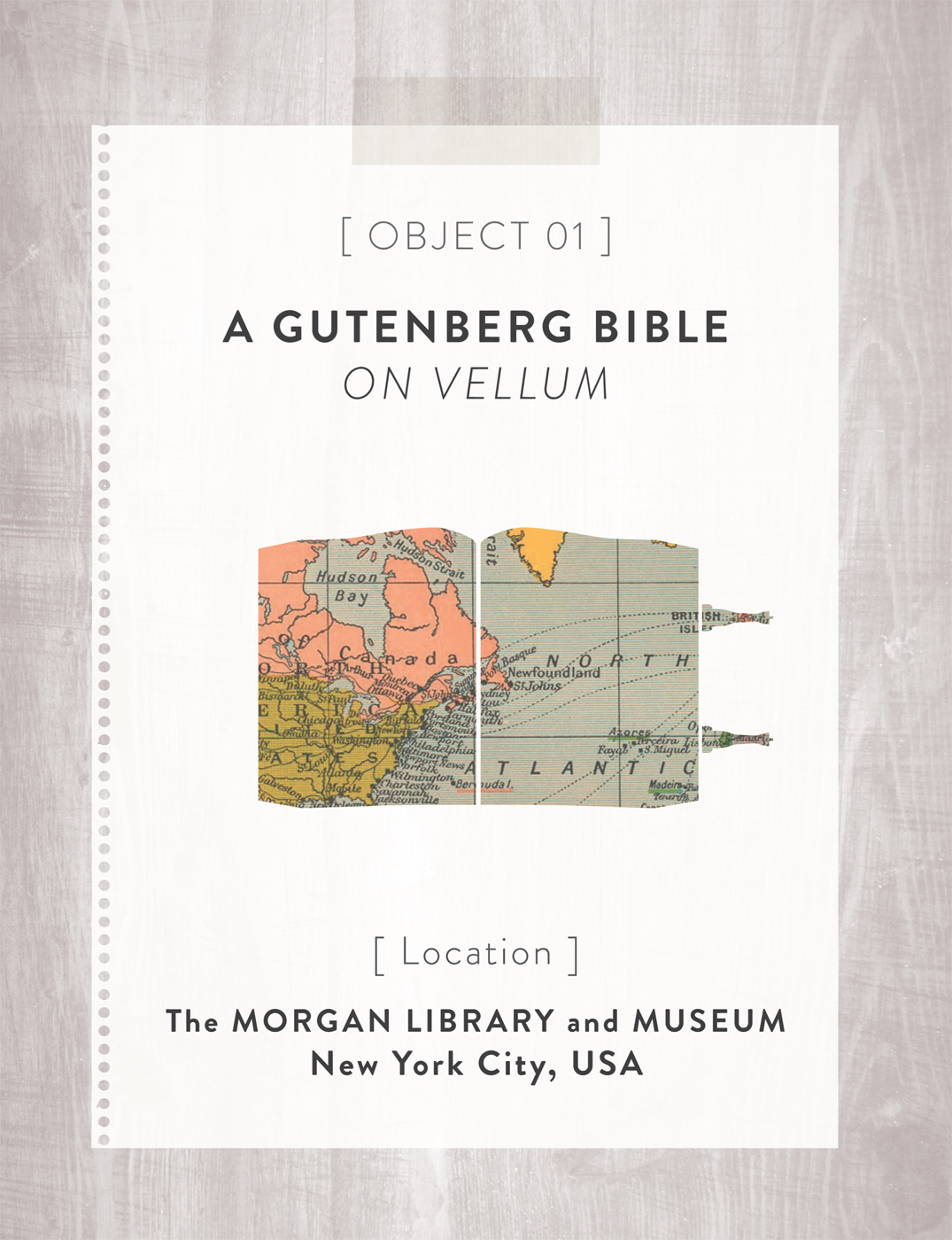Only the curators of the Morgan go down to the archives. They swap things in and out of display and bring items requested by people who want to see them up to the beautiful Morgan reading room. I came into the reading room to view a Gutenberg Bible, the first book ever printed in the western world. The Morgan owns three copies, more than any other institution in the world. There are only 50 or so copies in existence, and only 12 of those are on vellum. I had a morning to myself with the Morgan’s copy of the Gutenberg Bible on vellum.