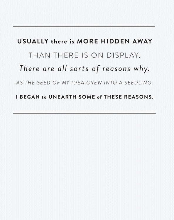 The seedling of this book was fed and watered with the help of curators and conservators at each museum: keepers of the keys to the hidden realms. Each time a door was unlocked and a curator ushered me into the collection they knew so well I found myself in a world of stories, lucky enough to be with the one person on Earth who could best explain the significance of the objects that surrounded us.