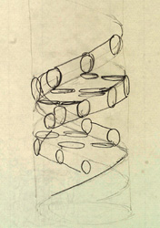 [Crick’s doodle of a DNA molecule] As we leafed through Crick’s papers I instantly recognized the spiralling ladder that carries the Earth’s variety of life forms.