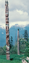 [Totem poles] The Haida are known for their totem poles, which they call monumental poles. They carve them from red cedarwood trees, and each one takes a year to make.