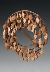 Puffins were symbolic for the sGaaga, because the birds dive into the water and disappear into another realm; shaking a rattle made from their beaks symbolized moving to another level of existence. The beaks were tied to circles of wood representing a cosmic doorway. The rattle would have been one of a pair and used only by a shaman.