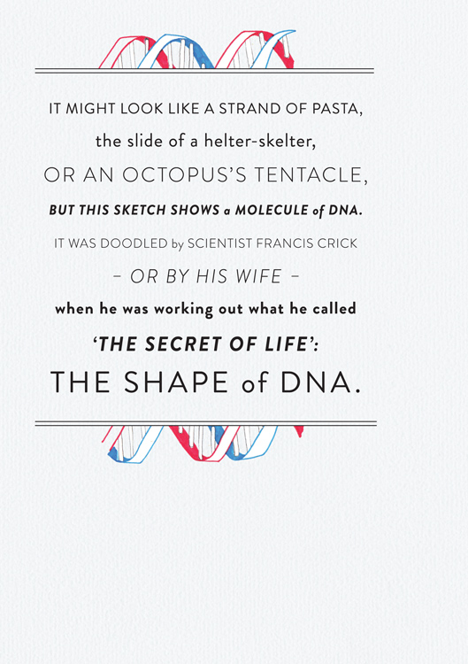 I saw the pencil sketch of DNA in the Wellcome Library, on Euston Road, London. The drawing belongs to the Francis Crick archive, which is made up of 2,000 paper files (or 200,000 sides of text/images) amassed by Crick during his career.