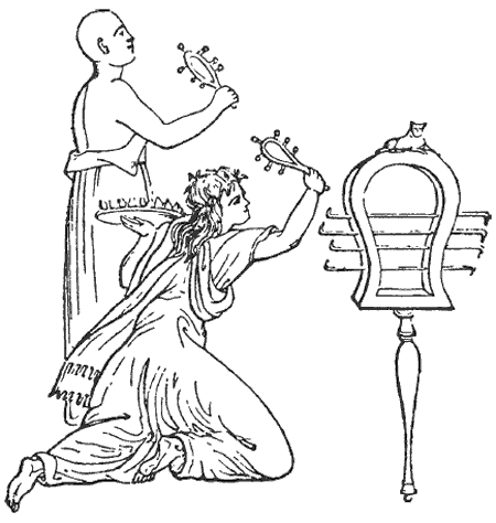 Систр использовался в Египте в качестве военного инструмента для сбора войск (Вергилий, «Энеида»), но это не предполагало его светского использования, так как египтяне жили своей религией и вносили ее в любое действие. В этом случае его, вероятно, считали орудием Хатор или Исиды в их военном аспекте, воплощенном в Сехмет, так как кошка, подобно змее, постоянно напоминала, что крайности сходятся и что Все охватывается Одним. Богиня вдохновляет или разрушает в соответствии с тем, под каким углом вы на нее смотрите. Госпожа Небес и правительница Запада, в ее небесном воплощении, – это Око Ра, солнца, а солнечные божества Шу и Тефнут – ее дети. Но в ее земном обличье она может быть богиней молодости, удовольствия и красоты, как греческая Афродита, богиня любви, или может показать нам лик жестокой и разрушительной Сехмет, чьим двойником была Беллона, богиня войны.