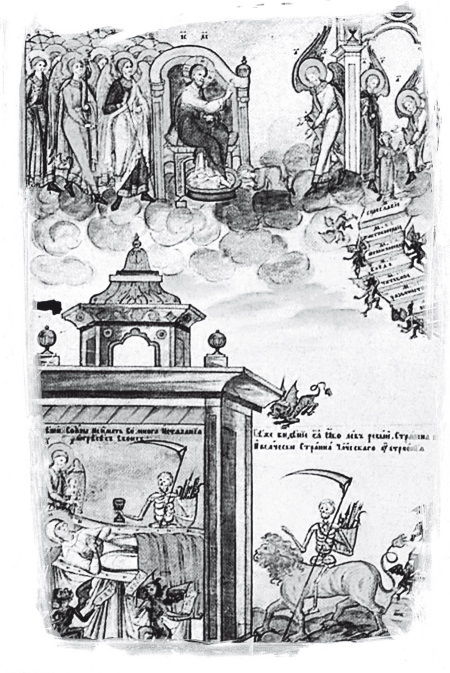 Смерть святой Феодоры и видения мытарств. Лубок (фрагмент)