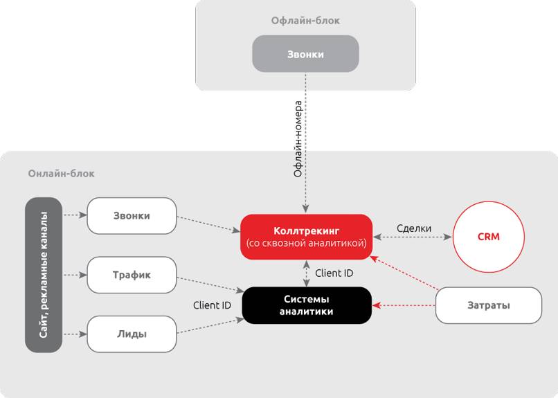 Самый простой вариант сквозной аналитики – интеграция системы коллтрекинга с CRM и данными Google Analytics и/или Яндекс.Метрики с использованием идентификатора Client ID5.