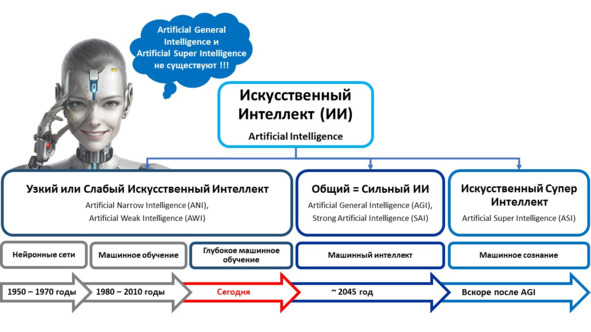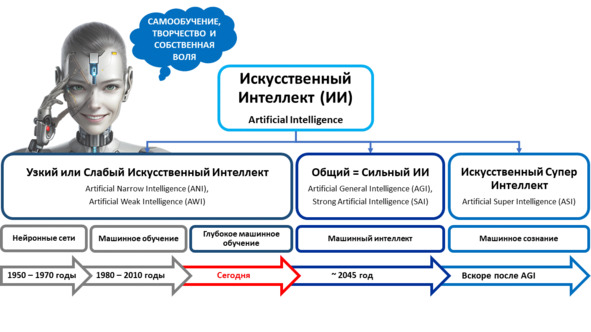 Искусственный сверхинтеллект (Artificial Super Intelligence, ASI) – это термин, который обозначает наивысшую степень развития искусственного интеллекта, превосходящую человеческие возможности во всех аспектах его жизнедеятельности392. На сегодняшний день систем искусственного сверхинтеллекта также, как и систем сильного или общего искусственного интеллекта не существует. Многие ученые считают, что до создания супер интеллекта пройдет очень много времени, но большинство из них все же сходятся во мнении, что это рано или поздно произойдет.