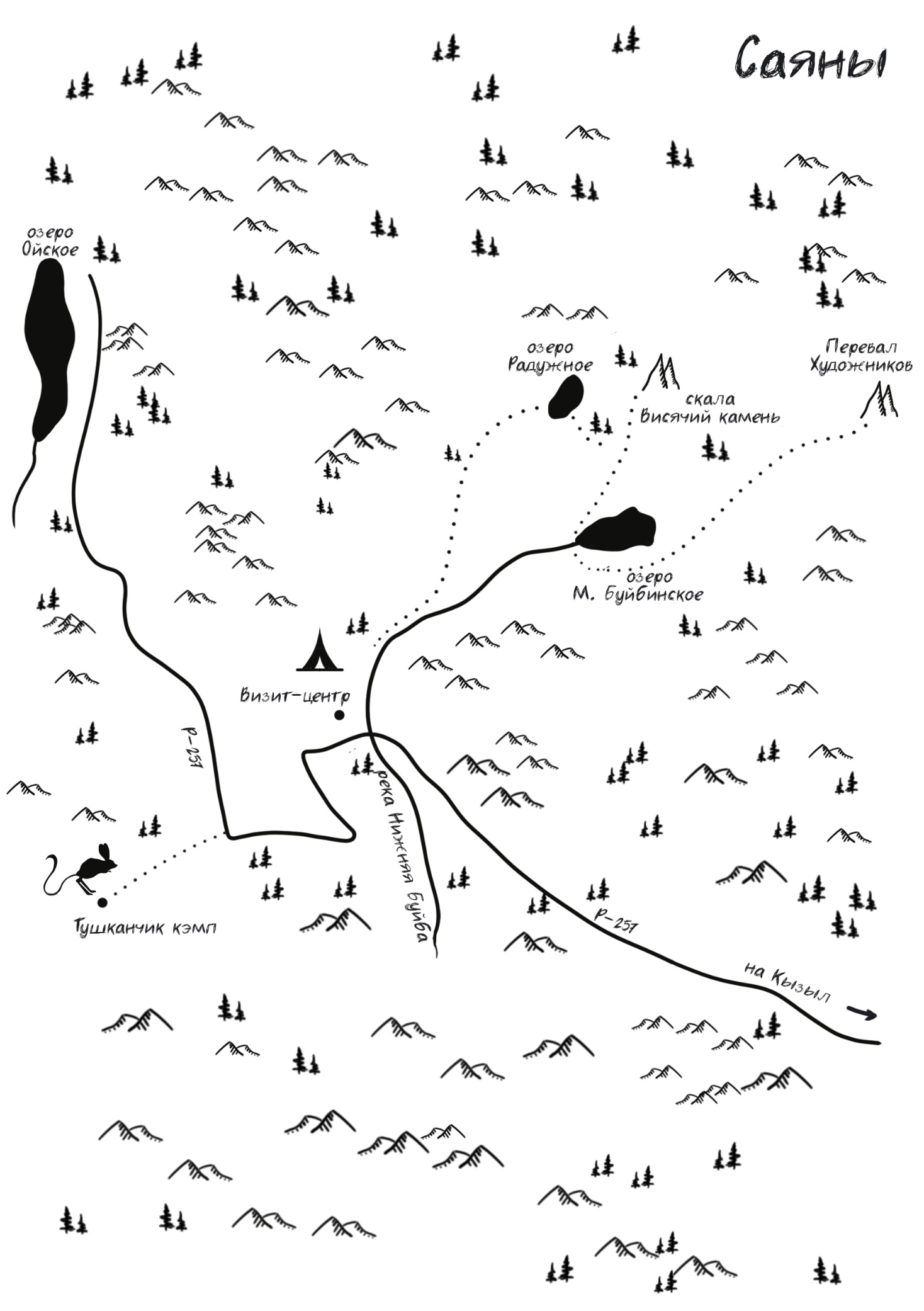 Погода здорово портит настроение. Здесь значительно холоднее, чем на Алтае, где температура не опускалась ниже +10 °С ночью. Сидеть три дня в холоде под дождем неинтересно. А значит, придётся отменить знакомство с парком и отправиться дальше по маршруту. Расстраиваюсь и уезжаю в Красноярск.