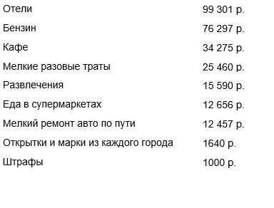 В пути я не отказывал себе ни в чем. Можно было сэкономить на отелях и жить в хостелах. Но под конец мне становилось сложнее восстанавливаться из-за накопленной усталости, и я возжелал комфорта. Поэтому расходами я доволен, тем более что за поездку мне удалось заработать: писал статьи для журнала, собирал донаты, разместил рекламу на авто от спонсора, получал кэшбэк.
