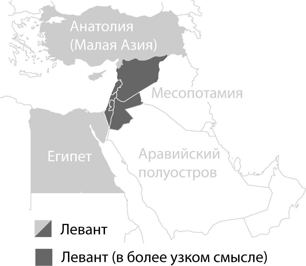 Термин «Левант»[21] в своё время европейцы употребляли в значении, в котором мы сегодня употребляем понятие «Ближний Восток». Левант описывали как «перекрёсток» между Передней Азией, Восточным Средиземноморьем и Северо-Восточной Африкой, но определения неоднократно менялись. Термин активно использовался до середины 20-го века, позже встречался разве только в книгах по истории и археологии. Не так давно понятие «Левант» было снова воскрешено в медиапространстве благодаря широкому освещению деятельности террористической организации ИГИЛ*, название которой расшифровывается как «Исламское государство Ирака и Леванта». Кроме «Леванта», примерно в том же историческом и географическом значении можно встретить термины «Большая Сирия», «Великая Сирия» и «Шам» (классическое арабское название Сирии).
