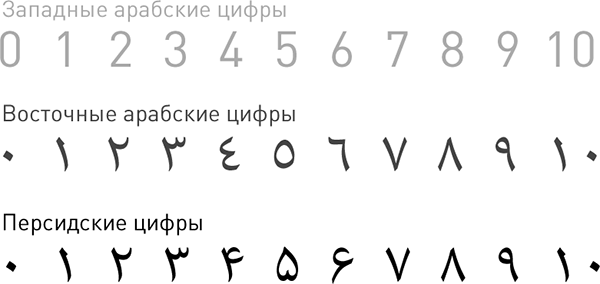 Цифры, которыми пользуется большая часть мира, мы называем арабскими. Другое их название – индийские или индо-арабские цифры. Название «арабские» образовалось исторически, из-за того, что в Европу десятичная позиционная система счисления попала через арабские страны. Тем не менее цифры, используемые в арабских странах Азии и в Египте, – восточные арабские цифры, называемые арабами индийскими цифрами, – по начертанию сильно отличаются от используемых в европейских странах.