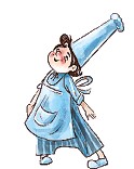 Башмак продавца свалился ему на голову. Головка у него была маленькая, и большой соломенный башмак пришёлся на неё, как шляпа.