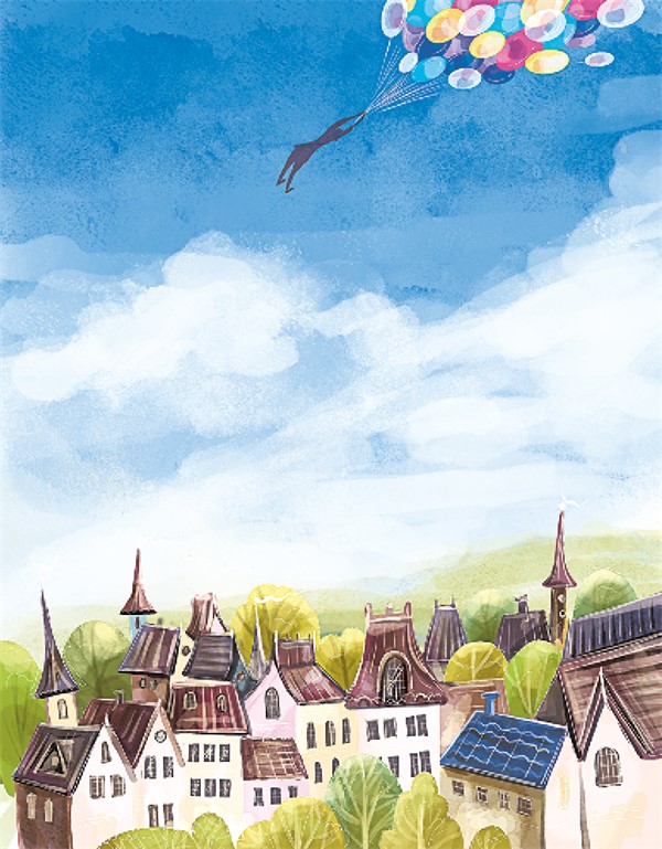 Теперь судьба наказала его за чёрствость. Он летел над городом, повиснув на верёвочке, к которой были привязаны шары. Высоко в сверкающем синем небе они походили на волшебную летающую гроздь разноцветного винограда.