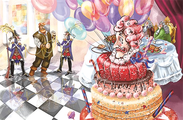 Шестеро слуг в голубых ливреях подняли огромное блюдо, на котором он сидел. Его понесли. Уже удаляясь, он слышал, как хохотали над ним поварята.