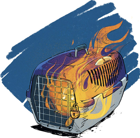 Дженни склонилась над пластиковой клетушкой, в таких обычно перевозят кошек или небольших собак. Внутри затаился клубок янтарного огня.