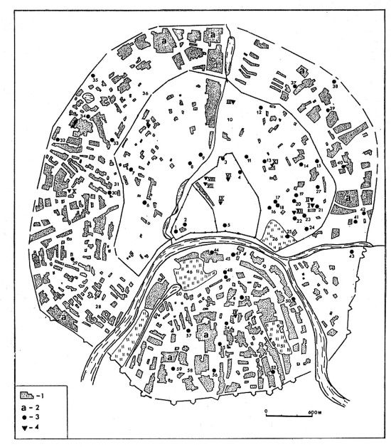 Уйдем теперь из Кремля, чтобы бросить взгляд на город в целом. Перерыв в активной полевой деятельности тянулся вплоть до конца 1970-х гг., когда число «археологических эпизодов» пополнили сначала реставрационные исследования и разведки, а затем, с 1980-х, огромные охранные вскрытия, охватившие большую часть старой Москвы и новые районы. С конца 1970-х гг. в Москве, параллельно группе МИиРМ, начали работать молодые тогда специалисты по археологии Древней Руси: Т.Д. Панова, Л.А. Беляев, чуть позже Н.А. Кренке и С.З. Чернов. В это время город начал готовиться к Олимпиаде (1980), а затем и к 1000– летию крещения Руси. Требовалось привести в порядок многие районы, среди которых оказалась важная в археологическом отношении юго-восточная зона Москвы с давно известными памятниками: Дьяковым городищем, Даниловым монастырем, селом Коломенское.
