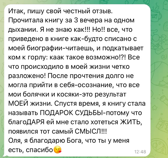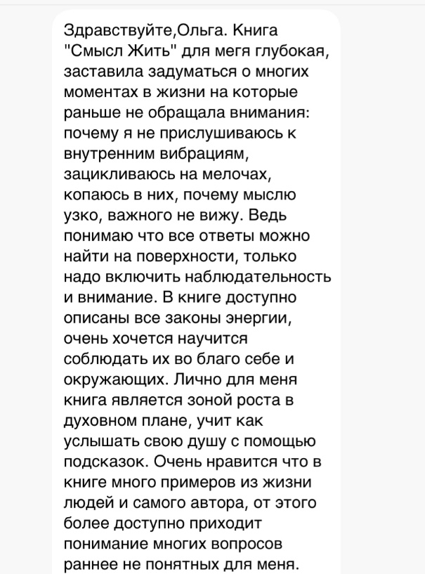 Итак, добавляю отзывы людей о книге (скрины) в том виде, в котором получаю и с радостью делюсь СМЫСЛОМ ЖИТЬ!