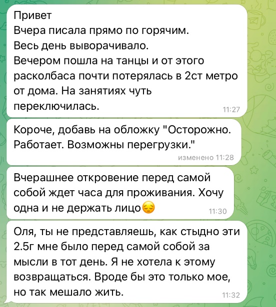 Я почувствовала надежду и вдохновение, благодарность к себе и к Богу. У меня завибрировало тело, что я могу выгрузить буквально все свои знания, осознания, подкрепленные опытом, своим и других людей.
