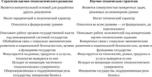 Принципиальные различия между стратегией научно-технологического развития и научно-технической стратегией государства можно представить в виде таблицы: