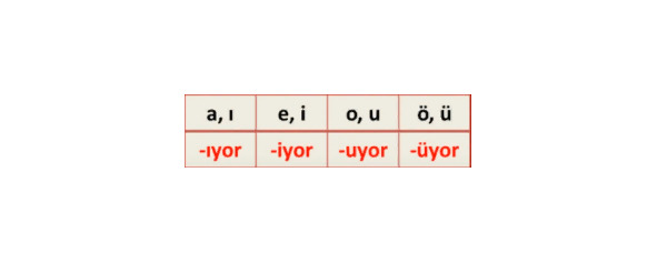 1. Если последняя гласная основы глагола ö или ü, нужен аффикс — üyor.